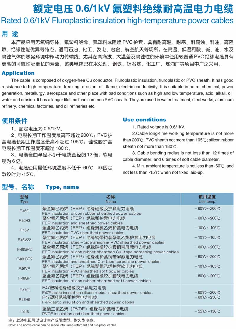 额定电压0.6/1kV氟塑料绝缘耐高温