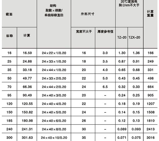 标称 | 计算 | 宽度不大于 | 厚度参考值 | TZ-10 | TZX-10 |