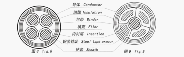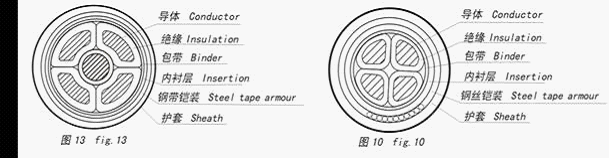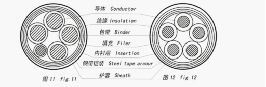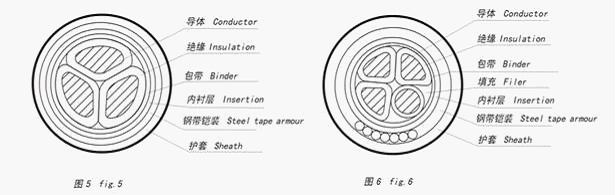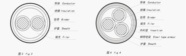 0.6/1 kV XLPE cable structure comprises a single core, two core, three core, four core (including 3+1 structure ), five core structure(including 4+1,3+2 ), respectively, as shown in Figure 1-13。