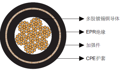 结构导体:多股镀锡退火铜导体。绝缘:乙丙橡胶(EPR)。 | ![]() |